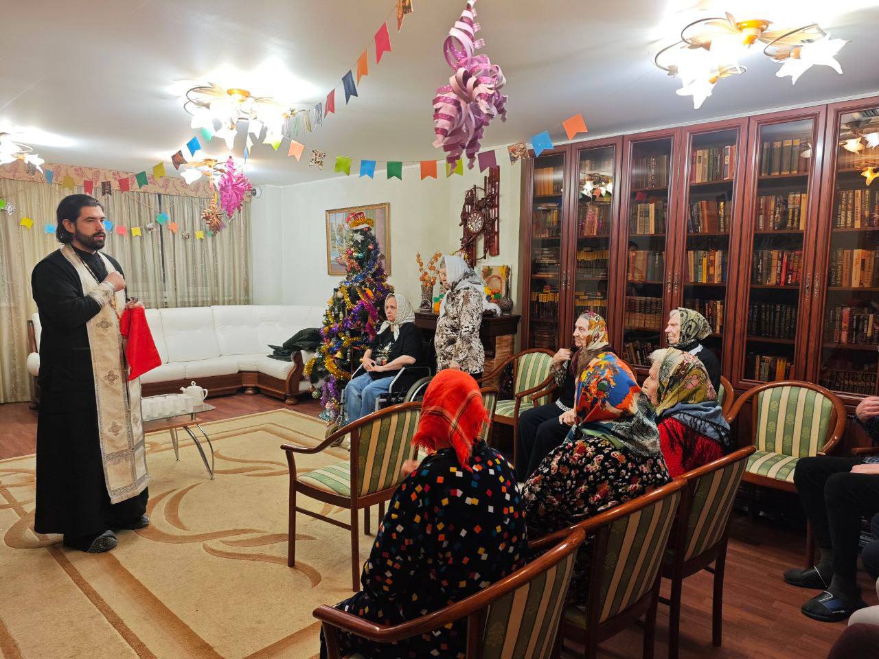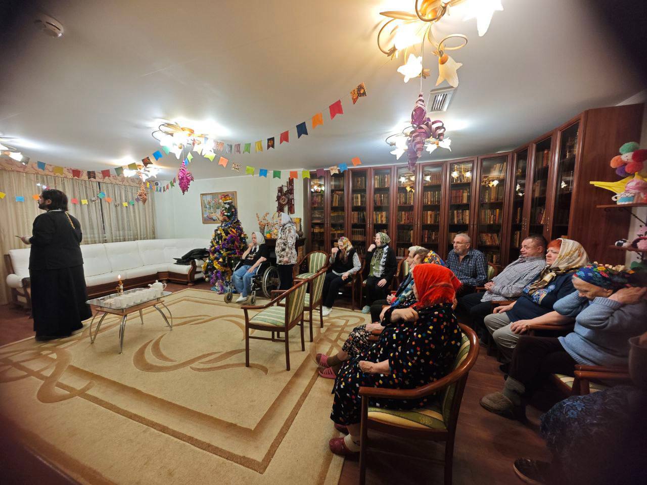 Священник поздравил всех собравшихся с наступившим гражданским Новолетием, с праздником Рождества Христова и грядущим Богоявлением. После поздравления была совершена совместная молитва, и проживающие интерната приобщились Святых Христовых Тайн.